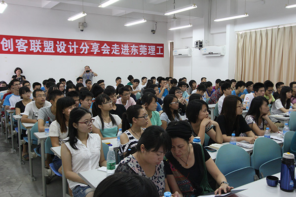 對(duì)于能夠到理工學(xué)院和這批未來(lái)設(shè)計(jì)師分享經(jīng)驗(yàn),楊總十分感謝創(chuàng)客聯(lián)盟提供這個(gè)平臺(tái)。只有中專學(xué)歷的楊總,經(jīng)過(guò)多年在行業(yè)的摸索和打拼,現(xiàn)已成為省內(nèi)設(shè)計(jì)公司的頂層人物,他也指出當(dāng)前即將投身工作的設(shè)計(jì)類學(xué)生一些盲點(diǎn):“目前高校設(shè)計(jì)類專業(yè)仍然注重理論教學(xué),能夠接觸的實(shí)踐機(jī)會(huì)較少,因此這次創(chuàng)客聯(lián)盟走進(jìn)學(xué)校和學(xué)生面對(duì)面交流,尤其是“智谷杯”3D打印創(chuàng)意設(shè)計(jì)大賽的來(lái)臨,更為他們提供一次“小試牛刀”的寶貴機(jī)會(huì),學(xué)生們應(yīng)該善于把握,積極提升設(shè)計(jì)經(jīng)驗(yàn)。